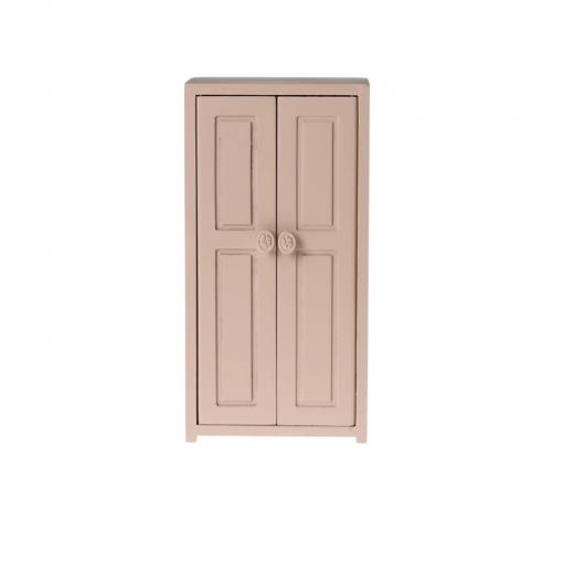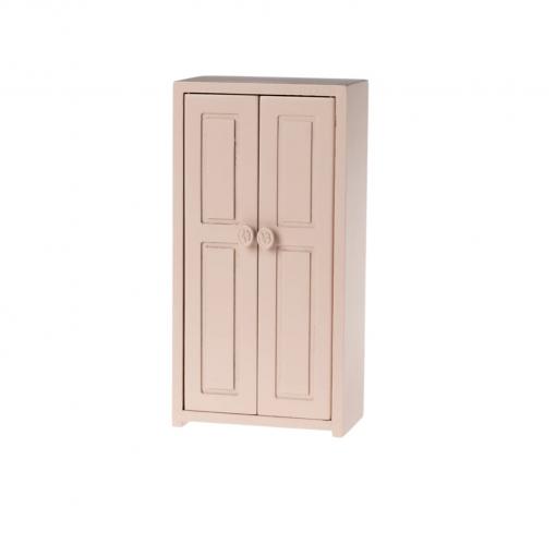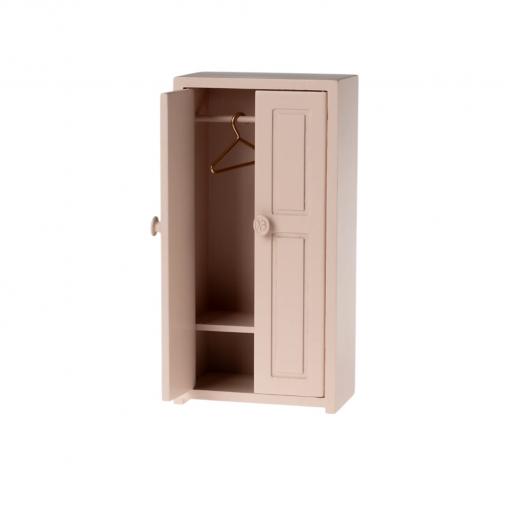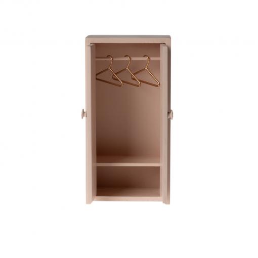 Un petit placard aide la famille de souris à organiser leur garde-robe. Le placard est livré avec trois cintres dorés.