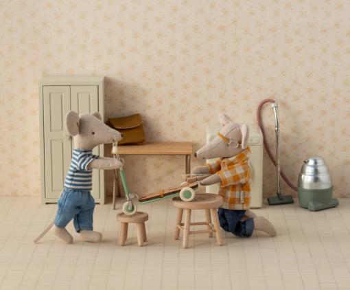 Un aspirateur est indispensable dans tous les foyers. Les souris dont les mains sont munies d'aimants peuvent facilement tenir la partie métallique et le ménage peut commencer.