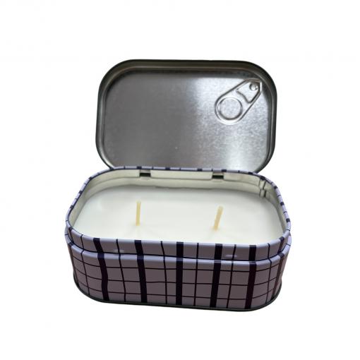 Présentée dans une boîte métallique au style rétro, inspirée des conserves revisitées avec sa languette décorative signature, cette bougie allie caractère et authenticité. Ses deux mèches offrent une diffusion homogène du parfum et une lumière douce, idéale pour créer une atmosphère apaisante.