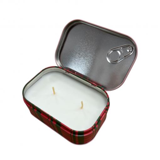 Présentée dans une boîte métallique au charme rétro, évoquant les conserves revisitées avec sa languette décorative, cette bougie apporte une touche ludique et élégante à votre intérieur. Ses deux mèches assurent une diffusion homogène du parfum ainsi qu’une lumière douce et chaleureuse.