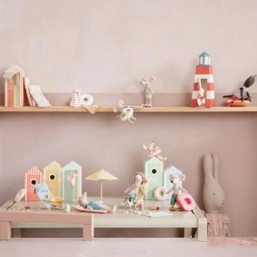 C’est les vacances ! Une bouée fabriquée en tissu enduit pour un look authentique. Elle n’est pas étanche, donc à utiliser uniquement sur un sol sec. Dans votre imagination seulement, elle flotte sur l’eau. Cet ensemble convient aux souris de taille bébé, petite sœur et petit frère.