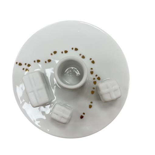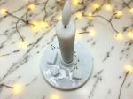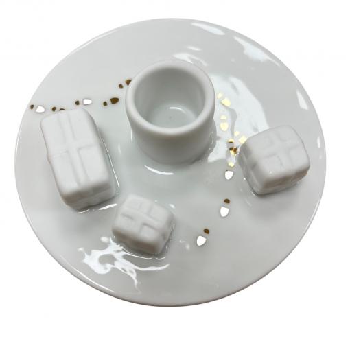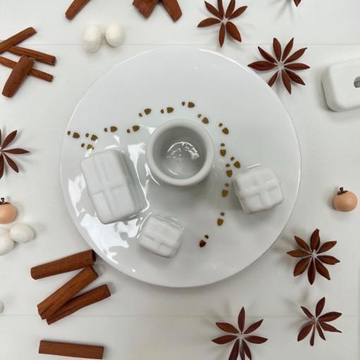 Ce joli bougeoir en céramique blanche, orné de petits paquets cadeaux et de touches dorées, capture tout l’esprit de Noël.