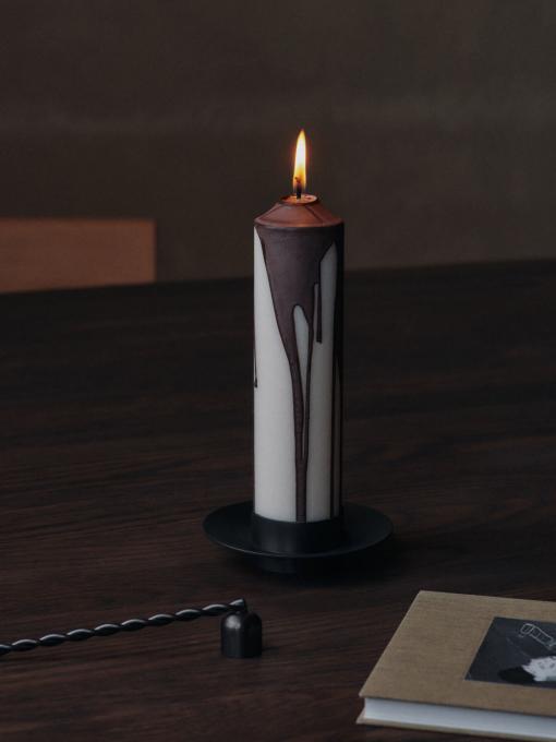 La bougie Dryp Pilier attire le regard par son design audacieux, façonné à la main à travers un subtil jeu de coulures. Réalisée en stéarine pure, elle associe une base blanc cassé à une couleur contrastante intense qui s’écoule le long de sa silhouette.