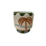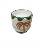 Coulée dans de la cire de soja, elle allie combustion propre et diffusion subtile du parfum. Une fois la bougie consumée, son pot illustré de palmiers peut être réutilisé comme tasse, pot à plantes ou élément décoratif : un objet qui vit bien au-delà de la flamme.