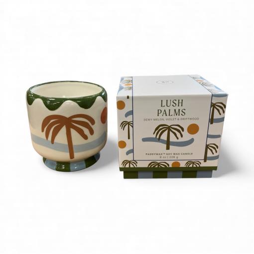 La bougie Palmier Podo de Paddywax mêle l’originalité d’un contenant en céramique illustré à la main et l’élégance d’un parfum frais et raffiné. Ses notes de melon rosé, violette et bois flotté invitent à une atmosphère ensoleillée et apaisante, rappelant la douceur des journées d’été.