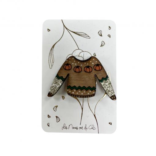 Broche en bois – Pull d’automne