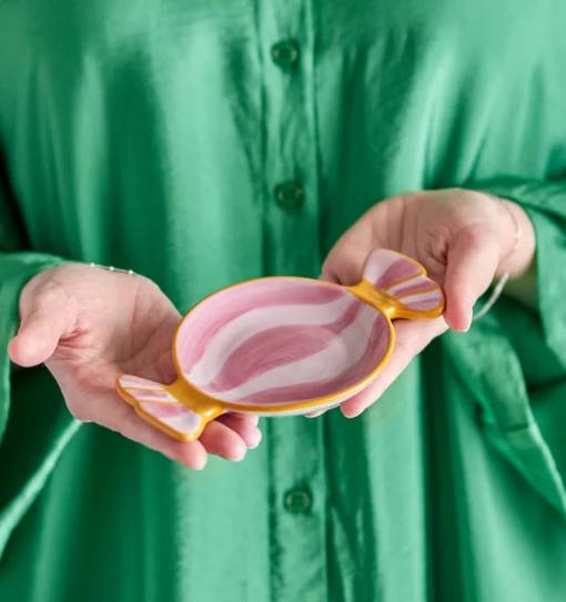 L’assiette Caramella de Bloomingville apporte une touche de gourmandise et de fantaisie à votre table. Inspirée de la forme d’un bonbon, elle allie design ludique et élégance scandinave, typiques de la marque danoise.