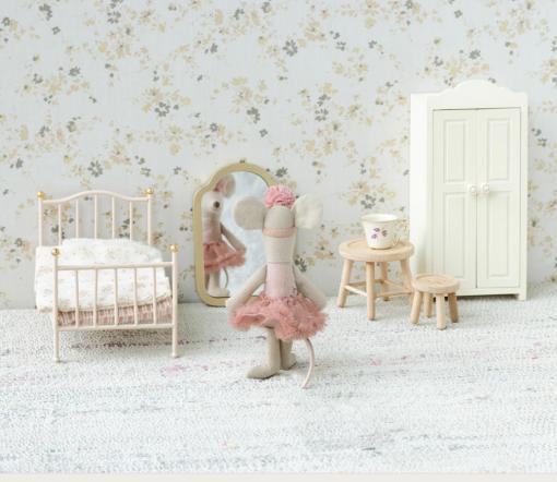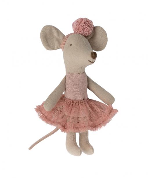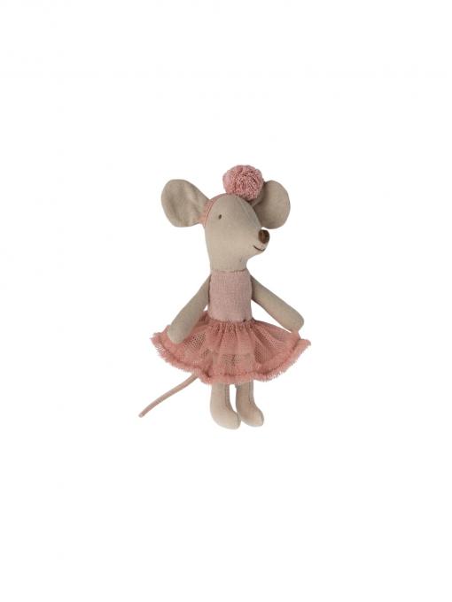 Petite sœur souris est habillée comme une gracieuse danseuse ballerine. Elle porte un magnifique tutu couleur rose et un superbe bandeau - elle est prête pour des heures de danse.
