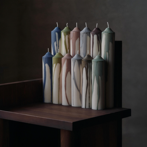 La bougie pilier Dryp se distingue par son design sculptural et son effet de cire coulée à la main. Réalisée en stéarine pure, elle présente une couleur contrastée qui s’écoule délicatement sur une base blanc cassé, créant un jeu de matières et de nuances unique.