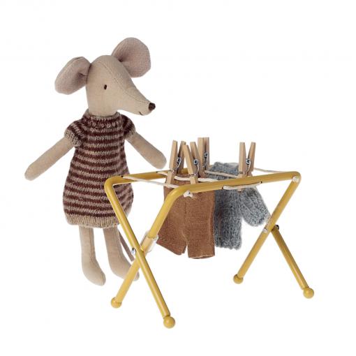 Parce que chaque famille a son lot de linge à étendre, ce petit séchoir miniature est parfaitement pensé pour les vêtements de la famille souris.