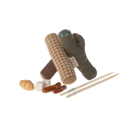 Les Souris randonnée sont en voyage! Ce set est accompagné de bâtons, de la nourriture et des branches. Les bâtons sont munis d'une petite partie métallique pour que les souris de randonnée puissent les tenir avec leurs pattes aimantées.