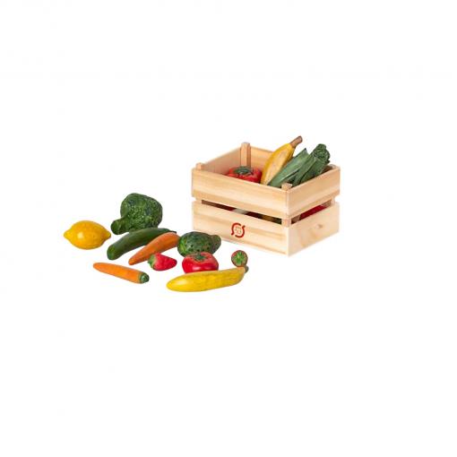 Une alimentation équilibrée est essentielle pour les souris et les lapins ! Cette boîte en bois contient des fruits et légumes miniatures réalisés avec des détails incroyables. Chaque pièce est peinte à la main, ce qui peut entraîner de légères variations.