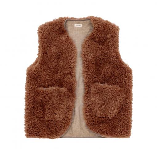 “Ce gilet en fausse fourrure signé Bed and Philosophy allie confort et élégance. Avec sa texture douce et son coloris chaleureux, il apporte une touche cocooning à votre tenue. Confectionné avec soin, il présente une doublure intérieure en tissu naturel pour un contraste subtil et raffiné. Parfait pour les journées fraîches, ce gilet est un incontournable de la saison, facile à porter sur un pull ou une robe pour un look à la fois décontracté et sophistiqué.”