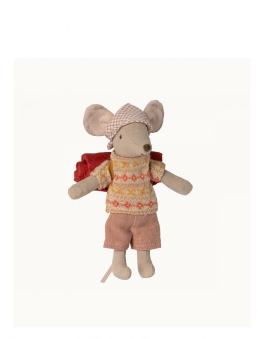 Rejoignez la grande sœur souris Maileg pour une aventure de randonnée inoubliable. Avec son sac de couchage pratique et ses mains aimantées, elle est prête à partir à l'aventure. Offrez à vos enfants un compagnon de voyage unique pour des moments de jeu passionnants.
