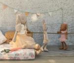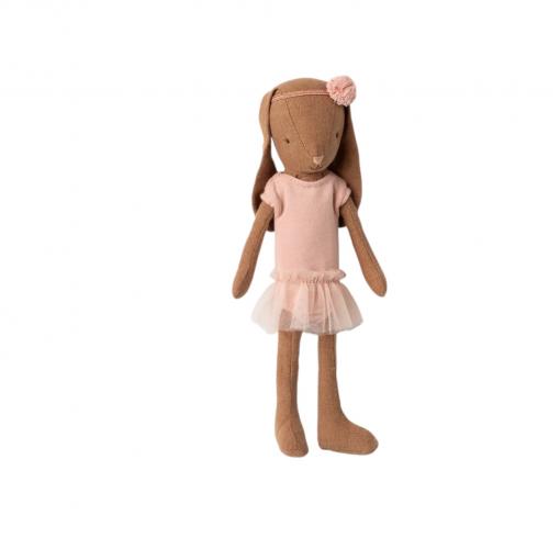 La douce Bunny Maileg s’est glissée dans son plus bel ensemble de danse : un body rose, une jupe en tulle léger et un bandeau assorti ornent sa tête aux longues oreilles tombantes. Prête pour un pas de danse ou une scène improvisée dans la chambre, elle invite petits et grands à rêver et à jouer tout en délicatesse.