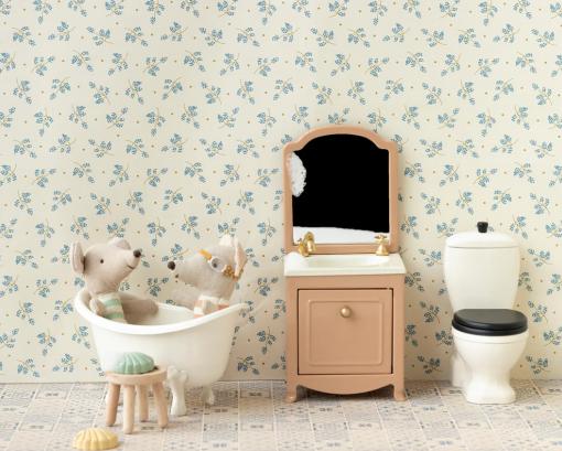 Un incontournable pour la salle de bains des petites souris. Il inclut un espace de rangement sous l’évier ainsi qu’un charmant miroir. Combinez-le avec les toilettes et la baignoire Maileg pour créer un ensemble de jeu complet.