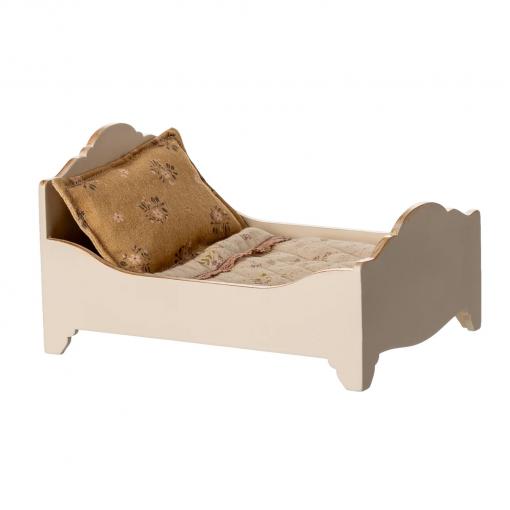 Après une longue journée de jeux et d’aventures, nos petites souris méritent le plus doux des repos. Ce charmant lit en bois, délicatement patiné d’une touche dorée, les invite à plonger dans de jolis rêves.