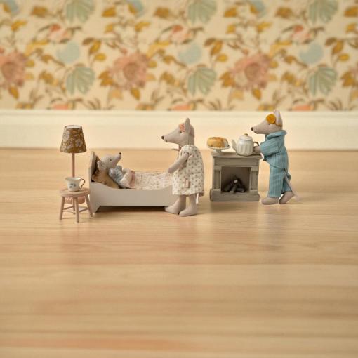 Avec sa parure de lit raffinée et son oreiller moelleux, il accueille confortablement papa et maman souris ou deux grandes sœurs ou grands frères souris, prêts à se blottir côte à côte.