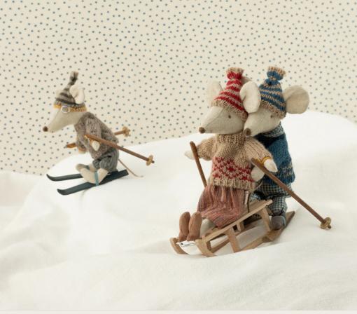 Cette luge en bois est l’accessoire parfait pour l’hiver, surtout quand la neige recouvre le sol. Elle est conçue pour s’ajuster à la taille des petites souris. Laissez la ficelle bien fixée pour pouvoir traîner la luge sans effort à travers la neige.
