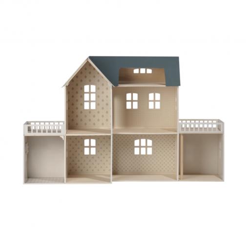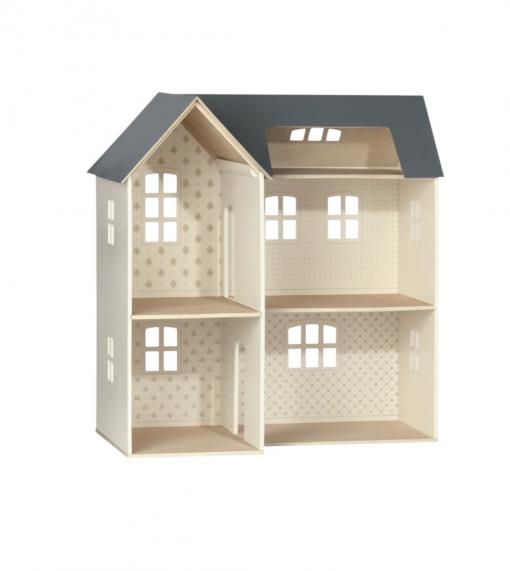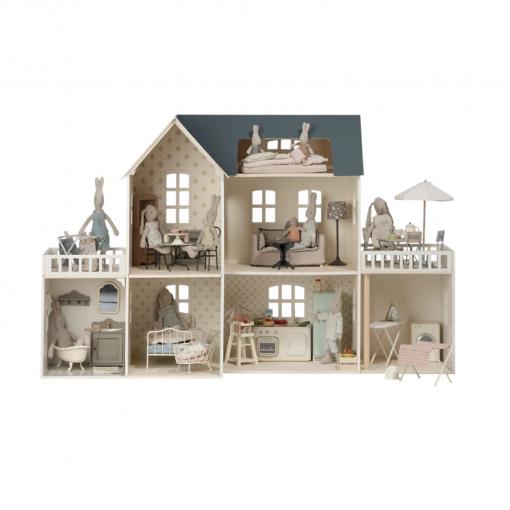 Maison de poupées Maileg avec des murs joliment décorés. Produits adaptés à cette maison : lapins/bunnies taille 1, 2, micro, my, famille Teddy, ainsi que les meubles et accessoires de taille miniature.