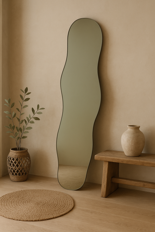 Évoquant la douceur des ondulations de l’eau, ce miroir introduit des lignes organiques et aériennes dans votre espace. Plus qu’un simple objet fonctionnel, il devient une véritable pièce décorative suspendue au mur. Inspiré de la silhouette emblématique du miroir Pond, ce modèle en version grand format offre une vue intégrale du corps, parfait pour une chambre, un dressing, une entrée ou tout lieu où l’on souhaite associer esthétique et praticité.