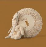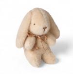 Confectionné dans une matière peluche extrêmement douce et unique, ce petit lapin séduit par son toucher délicat et son joli nœud noué autour du cou. Avec son expression pleine de tendresse, il est prêt à devenir le meilleur ami de votre enfant et à partager ses premiers instants de douceur.