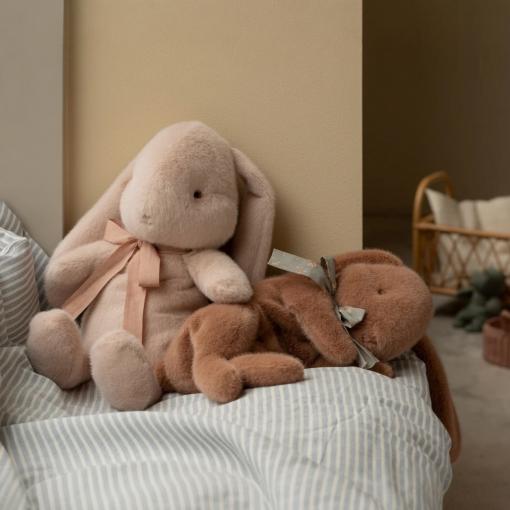 Voici le nouveau compagnon préféré des petits : un adorable lapin tout doux qui fait fondre les cœurs ! Avec sa frimousse tendre et son toucher moelleux, il invite aux câlins et aux confidences. Dans sa version marron, il porte un élégant nœud en coton Maileg qui lui donne encore plus de charme. Un indispensable plein de poésie pour accompagner les enfants dans toutes leurs aventures !