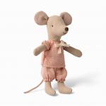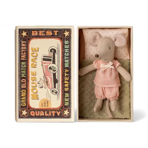 Cette adorable petite souris, emblématique de l’univers Maileg, promet des heures de jeu empreintes de douceur et de magie. Confortablement installée dans sa charmante boîte d’allumettes, elle y trouve un lit douillet pour dormir paisiblement après ses aventures. Sa tenue délicate, confectionnée dans des tissus particulièrement doux, se pare de jolis imprimés uniques qui ajoutent une touche d’élégance à sa silhouette. Parfaite pour stimuler l’imagination et les jeux d’histoire, cette souris deviendra très vite un compagnon précieux, prêt à partager chaque instant de tendresse.