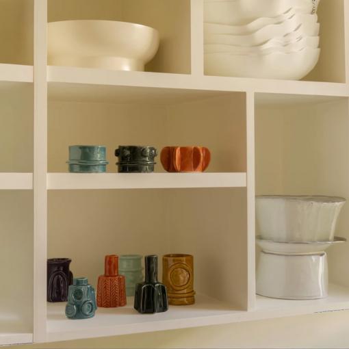 Issu de la collection Molly et imaginé par Marie Michielssen, ce photophore en céramique séduit par sa forme expressive et son émail charbon profond aux reflets subtils. À la fois sobre et contemporain, il diffuse une lumière douce et chaleureuse, créant une atmosphère intime et élégante. Chaque pièce, façonnée avec soin, révèle une singularité qui sublime tables, consoles ou étagères.
