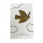 Symbole de paix et de douceur, cette élégante colombe dorée signée Atelier My Lovely Thing ajoutera une touche poétique et raffinée à vos tenues. Son design minimaliste et lumineux se marie aussi bien avec une veste qu’un sac ou un pull.