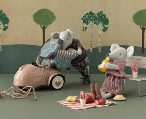 Emmenez vos amis en peluche pour un pique-nique, que ce soit dans la forêt, le jardin ou la salle de jeux. Cet ensemble est présenté dans une petite valise en métal et comprend tout ce dont vous avez besoin : nourriture et vaisselle pour un délicieux repas. De petites variations peuvent apparaître dans la peinture.