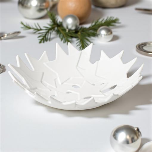 Composée d’un assemblage délicat d’étoiles, cette coupe en porcelaine blanche glacée allie finesse et poésie.