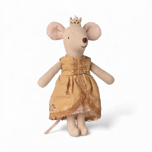 Cette adorable souris princesse, présentée au format grande sœur, incarne toute la magie des contes de fées. Habillée de sa plus élégante robe ornée de détails raffinés et coiffée d’une délicate couronne dorée, elle rayonne de grâce et de charme. Parfaitement adaptée au château Maileg, elle y trouve naturellement sa place et transforme chaque moment de jeu en une aventure royale. Toujours prête pour un bal, une promenade ou une nouvelle histoire enchantée, la souris princesse fera briller l’imagination des petits comme des grands.