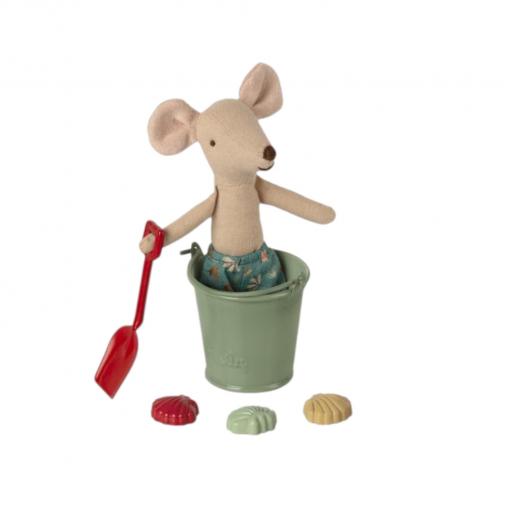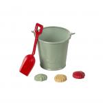 Le temps des vacances. L'ensemble de jeu parfait pour la plage. Un seau, une pelle et un jouet de sable miniature sont inclus.