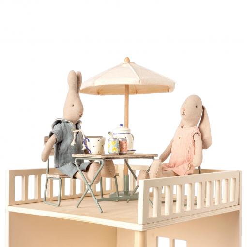 N'oubliez pas la pièce extérieure - cet ensemble de jardin vintage est parfait pour toutes les réunions d'été. Il convient à tous les bunnies et rabbits de taille 1 et 2 ainsi qu'à la famille Teddy. La base est en métal et le dessus en bois.