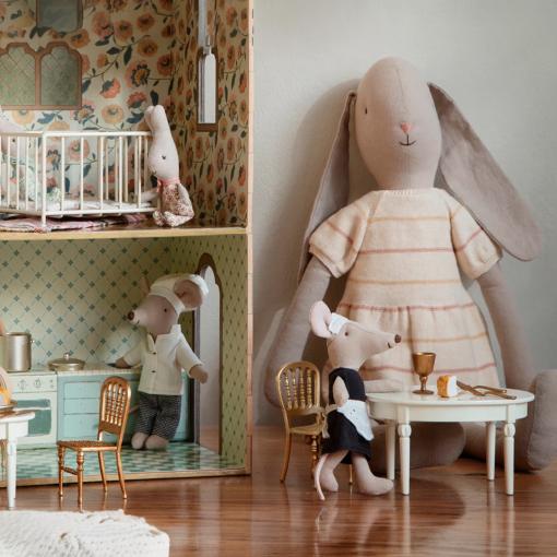 Toujours prête à donner un coup de main, cette adorable souris gouvernante veille à ce que tout soit parfaitement rangé dans la maison Maileg. Avec sa tenue classique et son petit tablier délicat, elle s’active pour accueillir les invités et garder la maison impeccable.