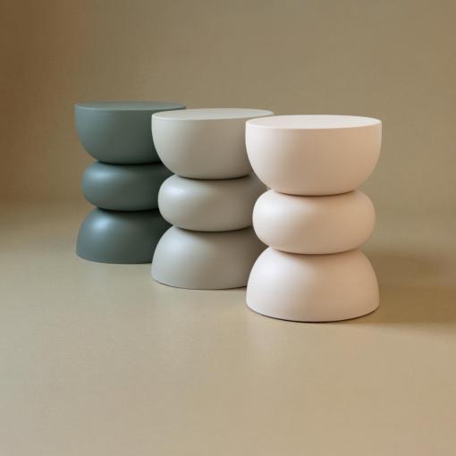 À la fois sculpturale et minimaliste, cette table d’appoint en fer beige se distingue par ses formes arrondies et son design contemporain.