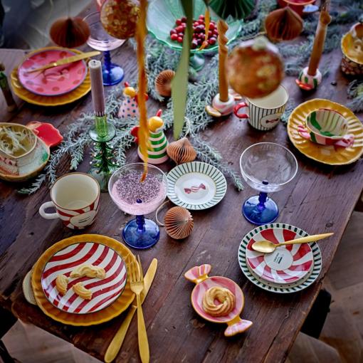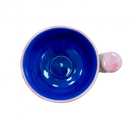 Le mug Caramella de Bloomingville séduit par son design joyeux et plein de fantaisie : un extérieur rose à pois rouges, un intérieur bleu profond, et une anse sculptée façon bonbon pour une touche irrésistiblement originale.