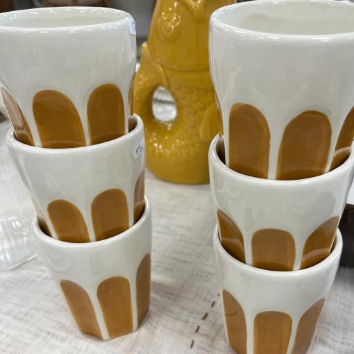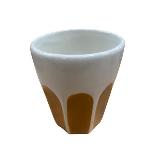Tasse sans anse – Grand modèle, déclinée ici en brun chaleureux. Inspirée des formes utilitaires traditionnelles, cette pièce met en valeur la beauté des objets simples, pensés pour durer et accompagner le quotidien. Ses côtes plates, soigneusement peintes à la main dans un brun profond et nuancé, structurent la surface avec douceur et laissent apparaître la trace vivante du geste artisanal. Chaque tasse présente de subtiles variations, signature unique de sa fabrication manuelle.
