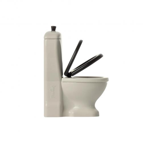 Un nouvel élément s’installe dans la salle de bains : un bloc de toilettes élégant dans une teinte blanc cassé. Le siège noir est fonctionnel, pouvant s’ouvrir et se fermer, et la chasse d’eau apporte une touche de réalisme amusante. Ses dimensions sont parfaitement adaptées à la famille des petites souris.