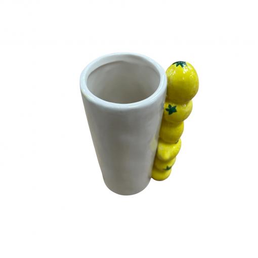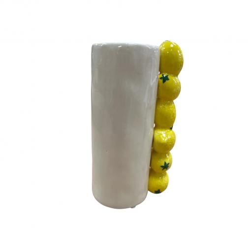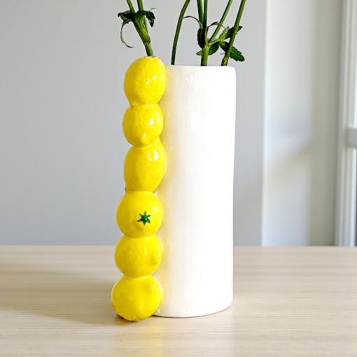 Apportez une touche ensoleillée et pleine de fraîcheur à votre intérieur avec ce charmant vase en barbotine décoré de citrons. Son design lumineux et texturé évoque l’été, la Méditerranée et la convivialité, tout en restant élégant et original. Idéal pour sublimer un bouquet de fleurs fraîches, des tiges séchées ou simplement comme objet décoratif, il attire immédiatement le regard et insuffle une ambiance joyeuse à n’importe quelle pièce.