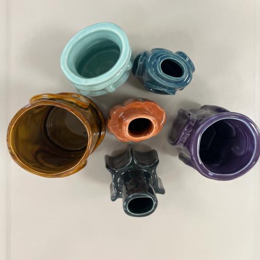 Pensé comme un objet décoratif à part entière, il peut accueillir une tige unique ou s’exposer seul, tel une petite sculpture. Chaque pièce est réalisée et émaillée à la main, ce qui rend chaque vase unique par ses nuances et ses légères variations.