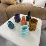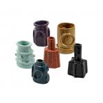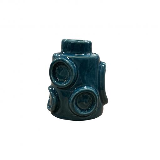 Issu de la collection Molly, ce petit vase en céramique bleu profond se distingue par sa silhouette organique et ses reliefs circulaires sculptés, qui lui confèrent un caractère à la fois ludique et contemporain. Son émail brillant met en valeur les volumes et révèle de subtiles nuances selon la lumière.
