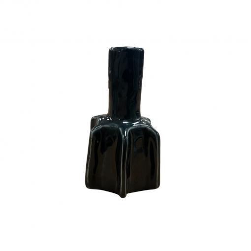 Issu de la collection Molly, ce petit vase en céramique couleur charbon affirme une présence forte et élégante. Sa silhouette sculpturale, rythmée par des lignes verticales et des volumes arrondis, est soulignée par un émail brillant profond qui capte subtilement la lumière.
