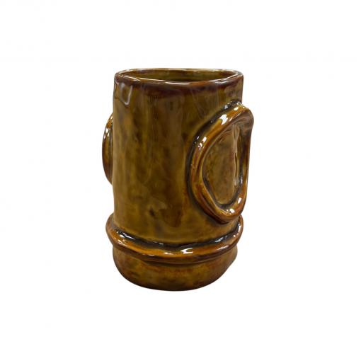 Issu de la collection Molly, ce petit vase en céramique couleur moutarde se distingue par sa silhouette cylindrique et ses détails en relief aux formes organiques. Son émail brillant, aux nuances chaudes et profondes, apporte une touche lumineuse et chaleureuse à l’ensemble.