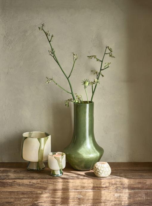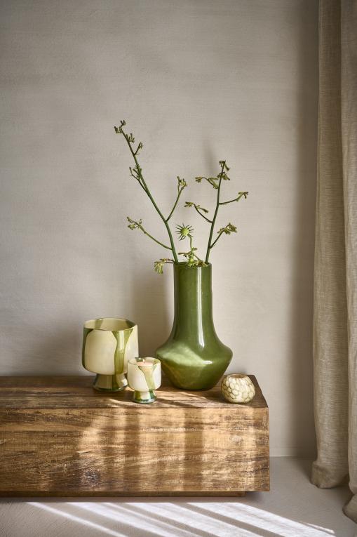 La collection Camou réunit vases, bougeoirs et photophores en verre soufflé.