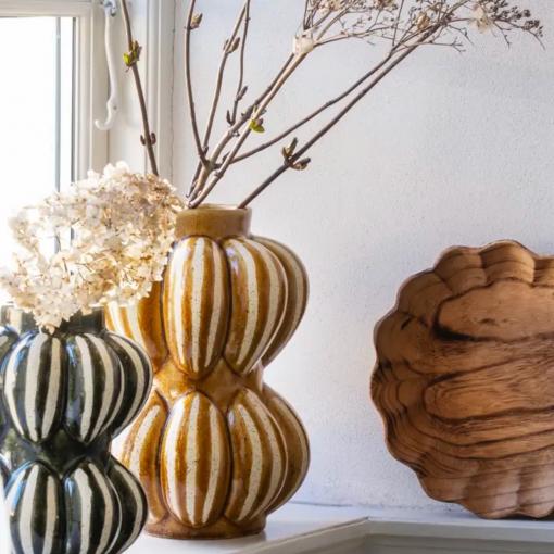 Avec sa forme sculpturale et ses motifs striés en relief, il attire le regard tout en apportant une touche chaleureuse et organique à votre intérieur.